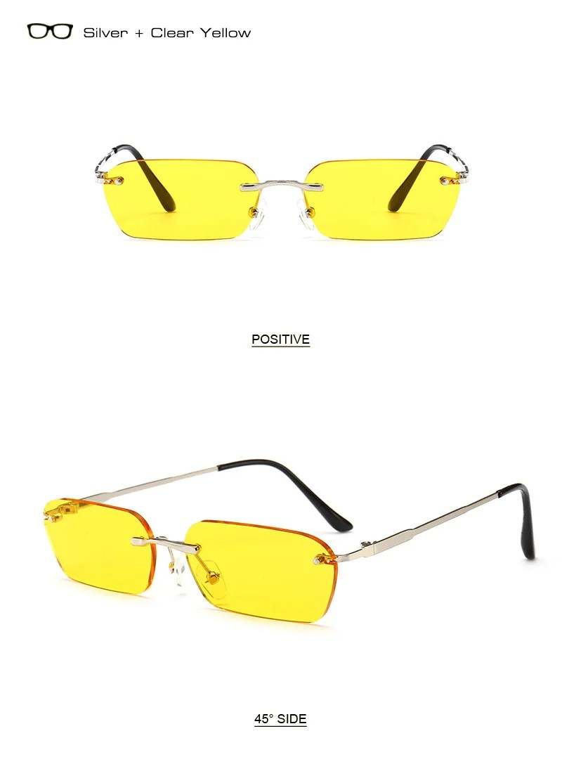Make a statement with these stylish rimless retro square sunglasses - perfect for a music festival, pool party, or dance club. Stand out from the crowd with these trendy accessories!